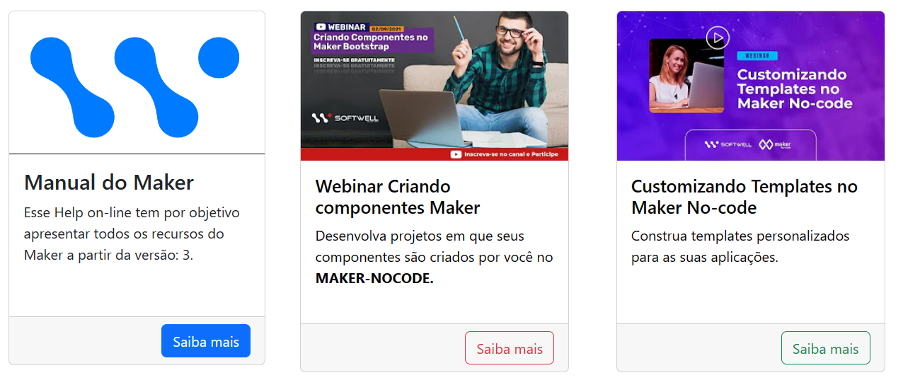 - Quando não definida o Tamanho dos Cartões, o cartão terá seu tamanho de acordo o seu conteúdo.