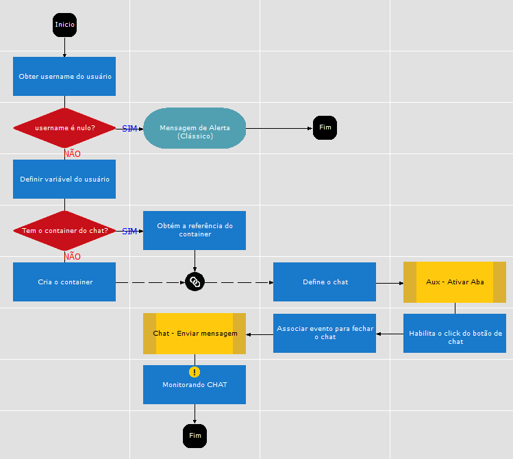 Veja a estrutura do fluxo utilizado neste exemplo do chat: