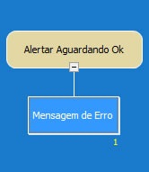 - Adicione um processamento e chame a função Alertar Aguardando Ok e nela passe como parâmetro a variável anteriormente declarada, "Mensagem de erro".