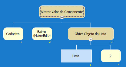 - No terceiro parâmetro informa a função Obter Objeto da Lista, como primeiro parâmetro desta função informe a variável Lista e no segundo parâmetro informe o valor 2. Onde será retornado o bairro como elemento.