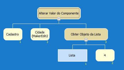 - No terceiro parâmetro informe a função Obter Objeto da Lista, como primeiro parâmetro desta função, informe a variável Lista e em seu segundo parâmetro informe o valor 3. Onde será retornado a cidade como elemento.