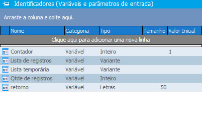 - Insira um objeto processamento e no montador de expressão selecione a função Tamanho da lista. Atribua seu retorno a variável Qtde de registros.