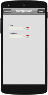 O componente caixa de texto possui algumas peculariedades ao ser selecionado o tipo data no Maker Mobile. Por exemplo, no webrun é possível digitar uma data manualmente, no Maker Mobile não. Observe a imagem abaixo: