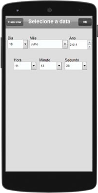 Como pode-se notar, o componente não permite uma inserção direta de dados, sendo necessário que o usuário selecione o calendário ao lado e em seguida determinar o dia, mês, ano, hora, minuto e segundo.
