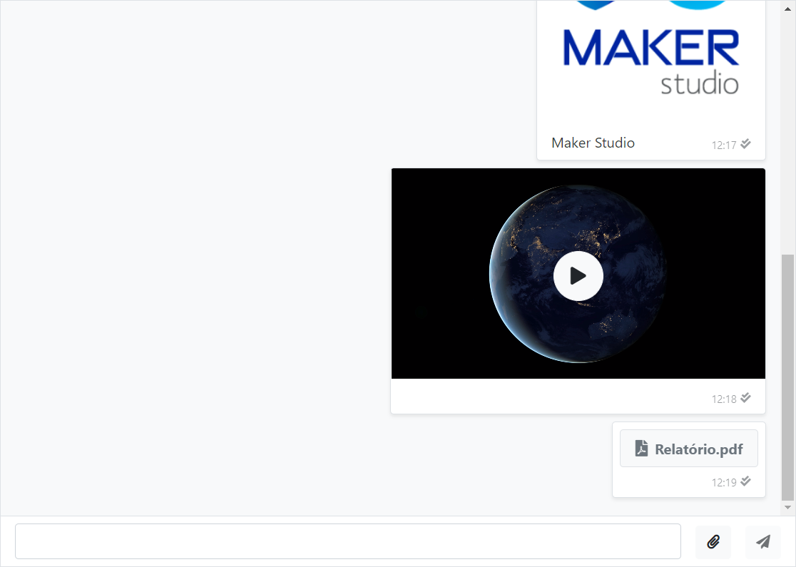 | Ao Enviar Mídia | Executado quando o usuário envia uma mídia no chat. | 1. Caminho Completo do Arquivo; 2. ID da Mídia; 3. MIME Type do Arquivo; 4. Nome do Arquivo; |